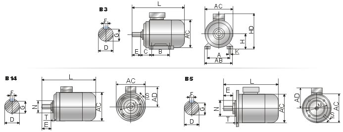 机座号 安装尺寸 安装尺寸 B5 安装尺寸 B14 外型尺寸(mm) A B C D E F G H K M N P S T M N P S T AB AC AD HD L 56 90 71 36 9 20 3 7.2 56 6 100 80 120 8.5 3 65 50 80 M5 2 112 108 93 149 192 63 100 80 40 11 23 4 8.5 63 7 115 95 140 10 3 75 60 90 M5 2.5 120 120 97 160 211 71 112 90 45 14 30 5 11 71 7 130 110 160 10 3.5 85 70 105 M6 2.5 135 135 107 178 246 80 125 100 50 19 40 6 16 80 10 165 130 200 12 3.5 100 80 120 M6 3 155 155 141 221 284 90S 140 100 56 24 50 8 20 90 10 165 130 200 12 3.5 115 95 140 M8 3 175 175 160 250 314 90L 140 125 56 24 50 8 20 90 10 165 130 200 12 3.5 115 95 140 M8 3 175 175 160 250 339 100L 160 140 63 28 60 8 24 100 12 215 180 250 15 4 130 110 160 M8 3.5 200 195 160 260 412 112M 190 140 70 28 60 8 24 112 12 215 180 250 15 4 130 110 160 M8 3.5 226 220 166 278 421